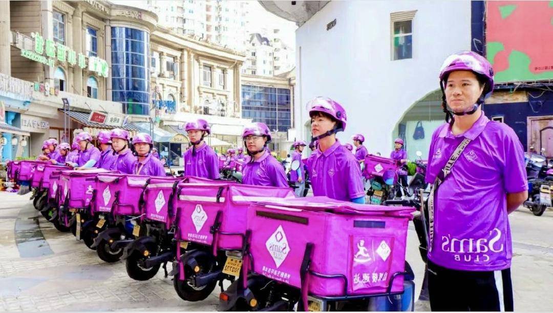 紫色马甲是山姆配送员的长入形象。他们承担着“山姆专送”的任务:大件、冷链、高价值商品,王人需要他们在最短时辰内、以最安妥的式样投递。