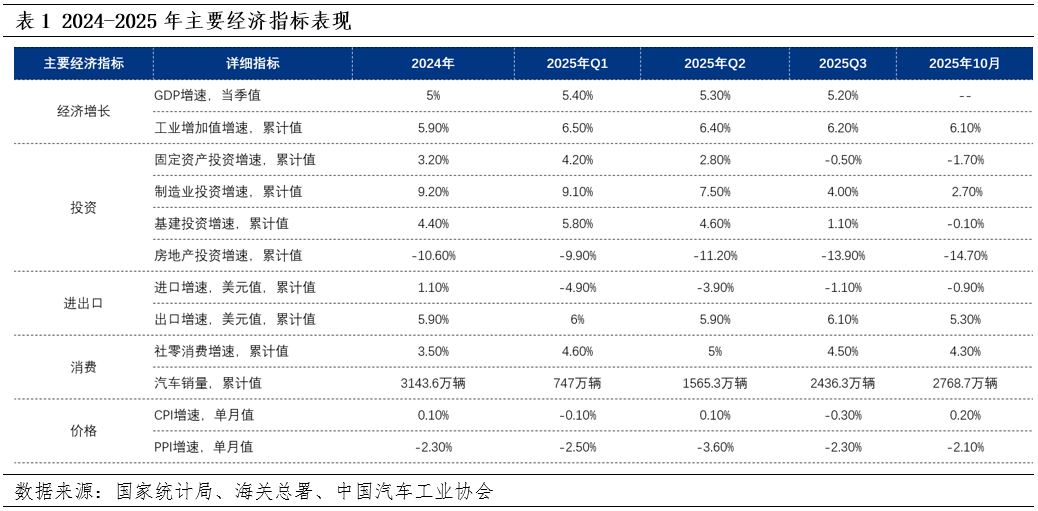 2025年10月,我国宏不雅经济呈现出总量增速承压与结构性分化态势。供需两侧均有所走弱,工业增多值、社零耗尽、固定财富投资同比增速均有所放缓,同期,出口同比增速也由9月超预期偏强态势突然转负。但劳动零卖累计同比延续和睦耕种态势,高技巧制造业分娩相对偏强,CPI同比转正重复PPI跌幅收窄、物价水平合理回升,交易结构延续优化,经济全体“稳中有进”态势不变。
